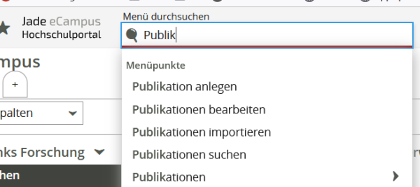 Ist Ihnen der Menüpunkt bekannt, können Sie ihn per Typahead über das Menü-Suchfeld aufrufen.